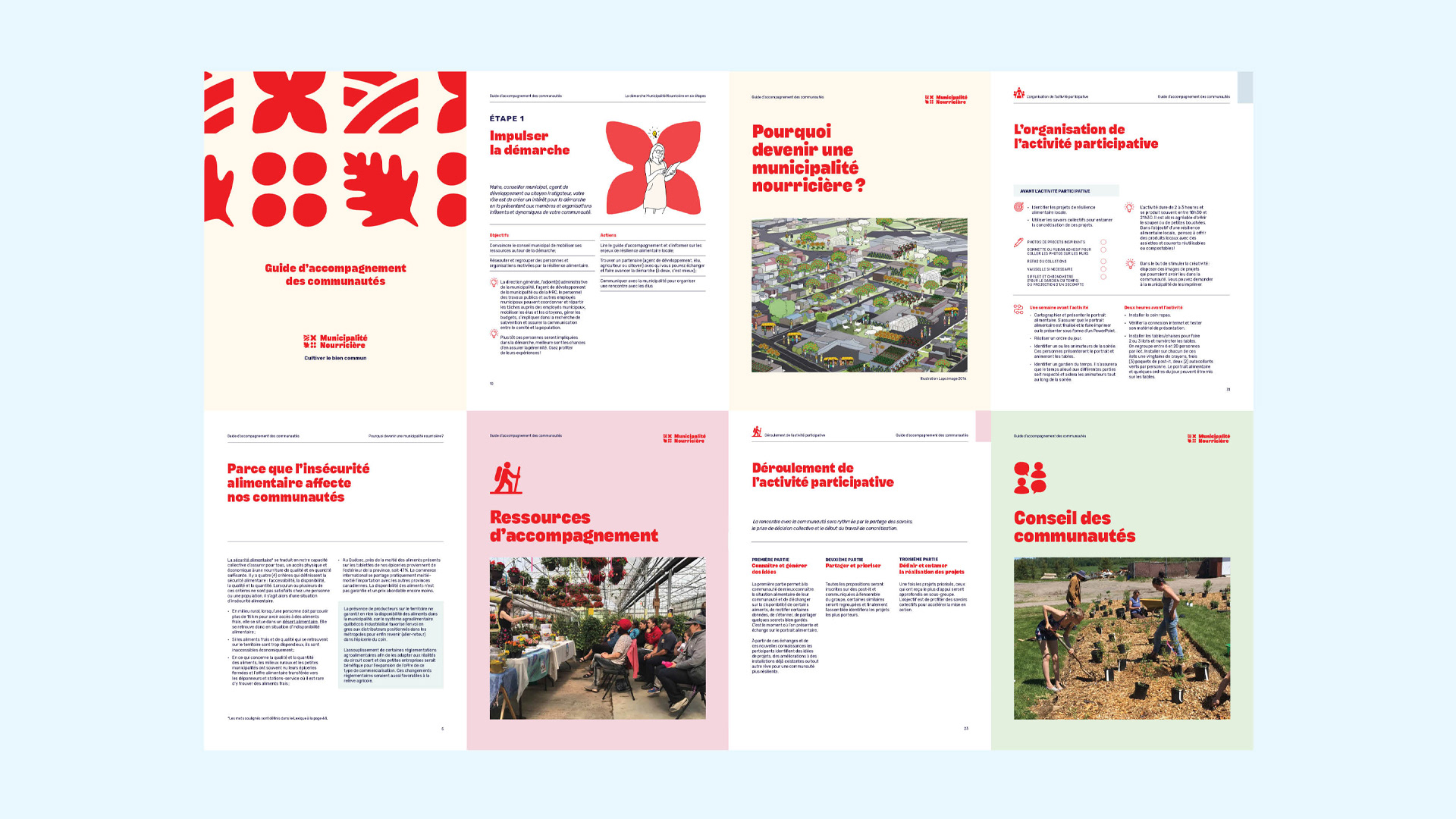 Municipalité Nourricière est une initiative d’Eurêko! visant à promouvoir la résilience alimentaire et ainsi redonner plus de pouvoir aux régions. Le journal de bord démystifie les étapes nécessaires pour habiliter les citoyens à démarrer le processus dans leur communauté. Ce guide propose une multitude de ressources pour aider à créer un comité et organiser des réunions, des exercices pour trouver les points forts de chacun, analyser les ressources et les petites entreprises de la région, comment contacter la mairie, etc. Mon rôle était de créer une identité dynamique ainsi que d’élaborer une stratégie de contenu afin de le rendre aussi clair et attrayant que possible. Les illustrations ont été conçues par le studio LAPS.